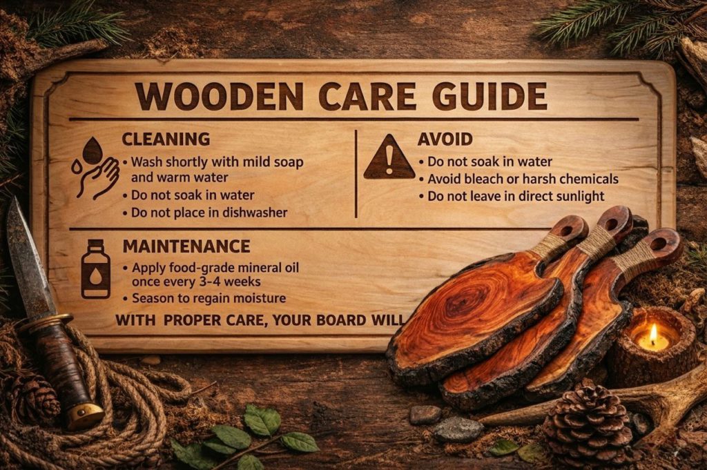 • Apply food-grade mineral oil once every 3-4 weeks • Season to regain moisture