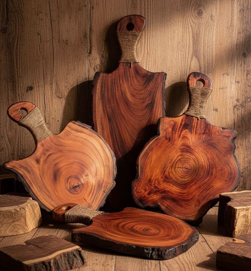 Every curve and grain tells a story. Our artisans carefully select premium mahogany to create boards that aren’t just tools, but pieces of art for your home.